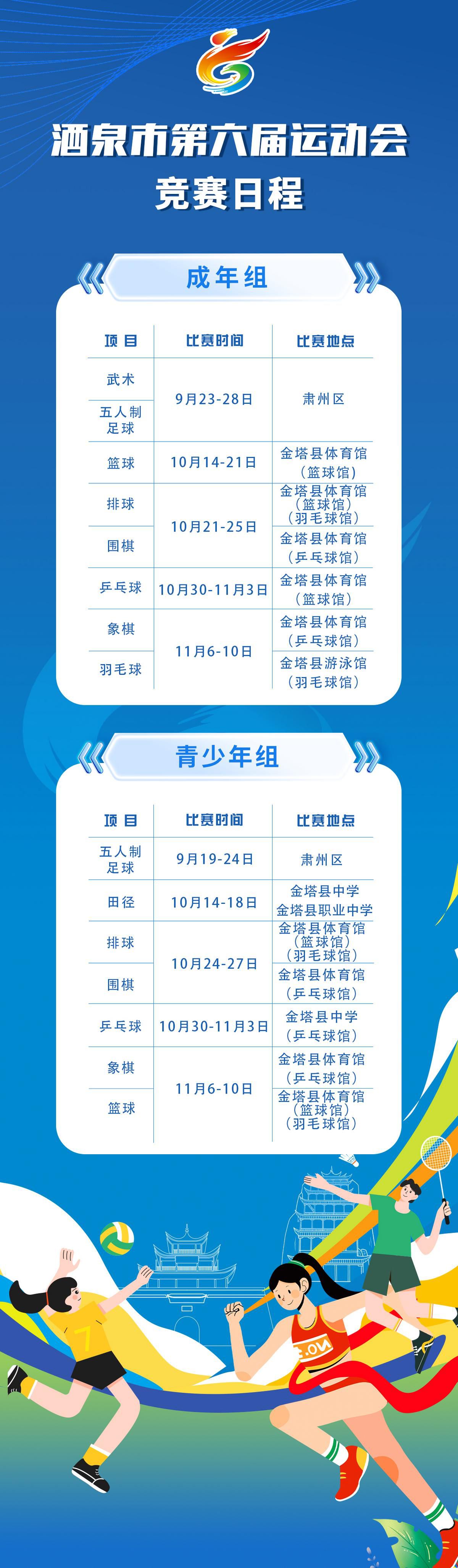 【聚焦市六運會】收藏!酒泉市第六屆運動會競賽日程來了
