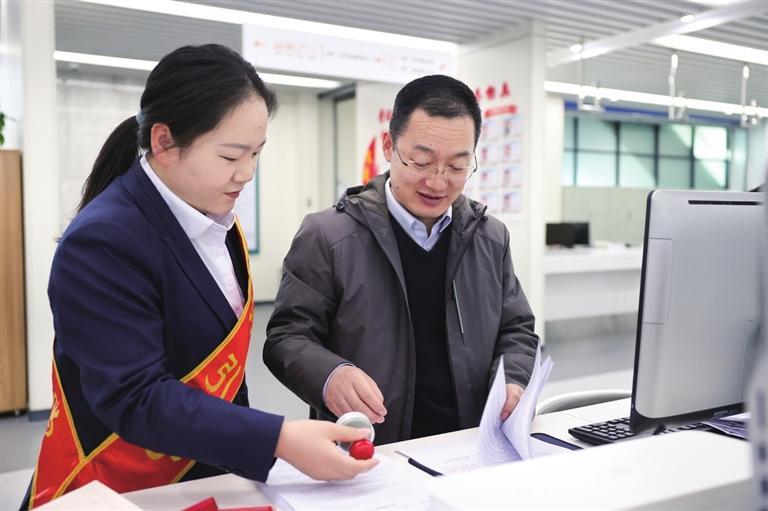酒泉市政務服務中心工作人員為前來辦事的群眾提供幫辦代辦服務。王鈺涵