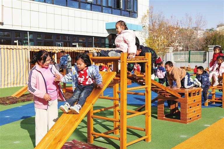 酒泉市敦煌路幼兒園的保育員在陪幼兒做游戲。范昊帆